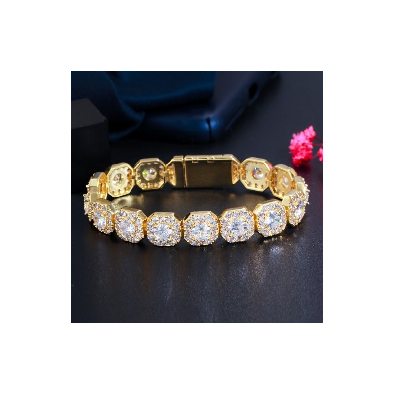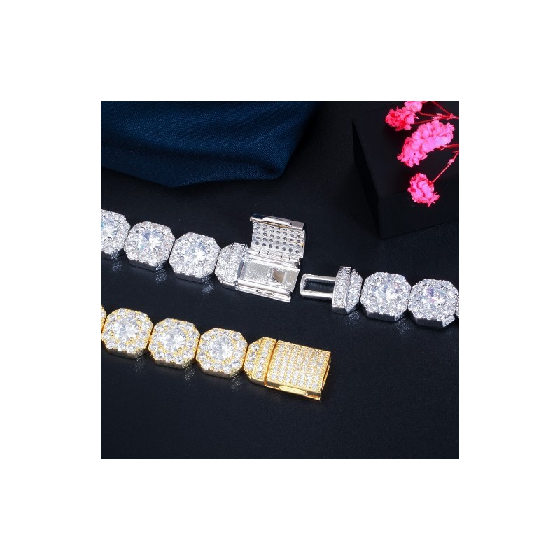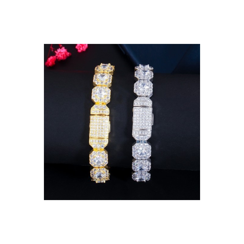 CWWZircons Bling Square Halo Cubic Zirconia Pave White Gold Color Bracelet Bangle for Women Wedding Party Hip Hop Jewellery CB270