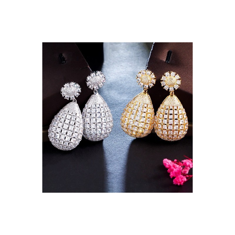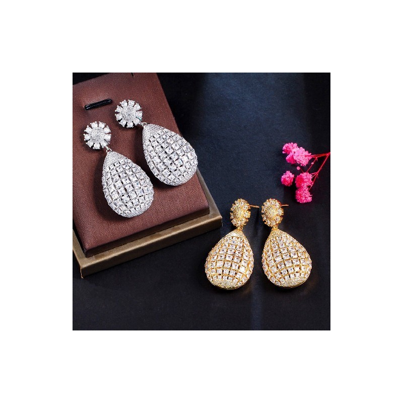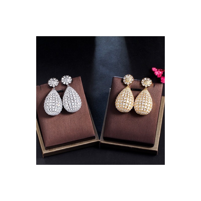 CWWZircons briliáns fehér cirkónia beállító nagy kerek, leejtő hosszú női fülbevaló CZ esküvő Dubai aranyozott CZ293