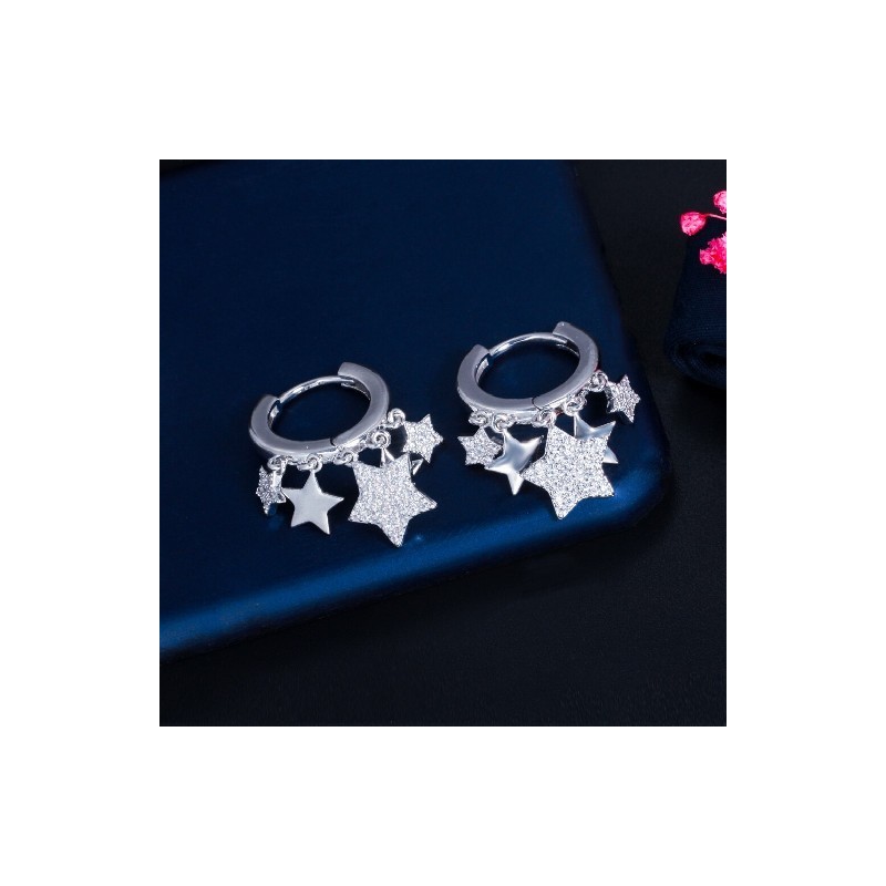 CWWZircons Glitering CZ Brazilian Gold Plated Tassel Lucky Star Endless Huggie Hoop Earrings with Charm Women Boho Jewellery CZ892
