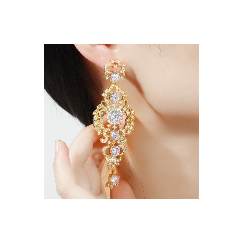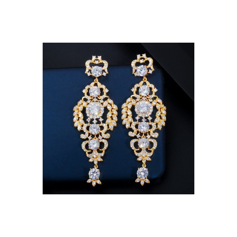 CWWZircons Exclusive Long Leaf Drop Dangling Cubic Zircon Wedding Engagement Party African Gold Plated Earrings for Women CZ659