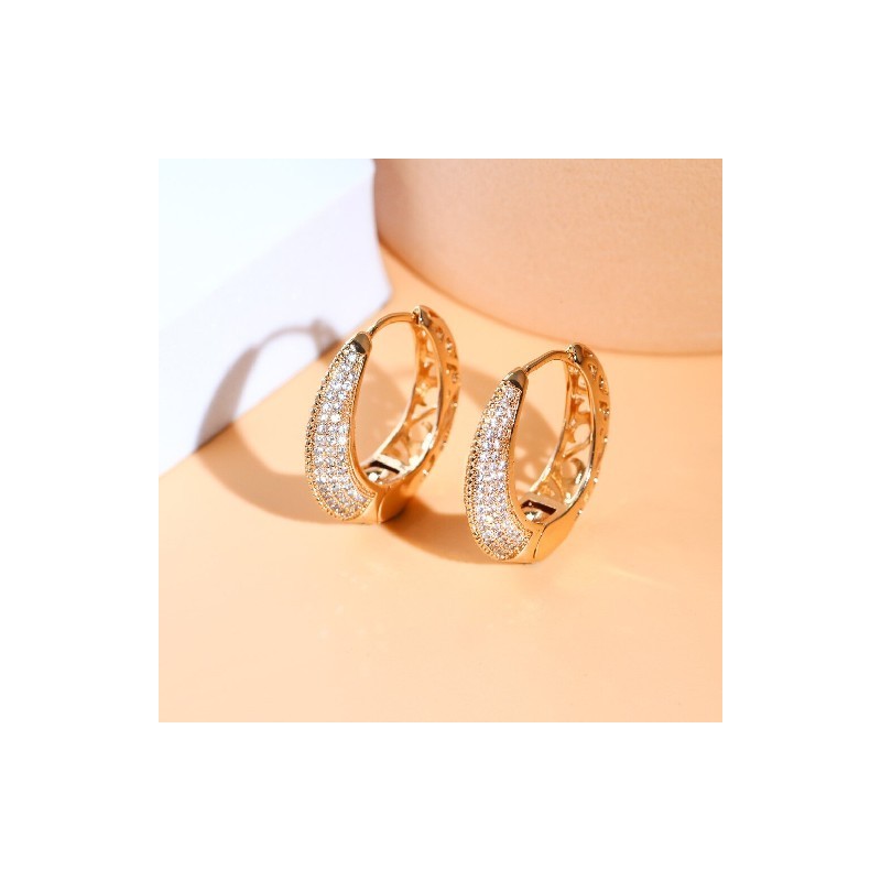 CWWZircons gyönyörű, üreges mikrobetétes cirkónium arany színű elegáns, kör alakú, karikás fülbevaló nőknek CZ138