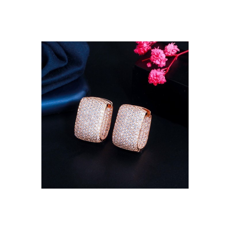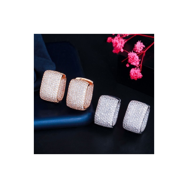 CWWZircons Double Sided Micro Paved Cubic Zirconia White Gold Color CZ Stone Rectangle Hoop Earrings for Ladies Jewellery CZ910