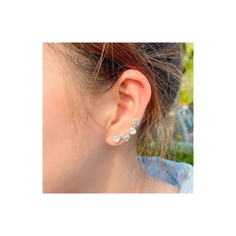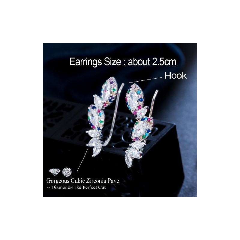 CWWZircons Chic Multicolor Rainbow CZ Ear Cuff Climbing Hook Stud Earrings for Women Fashion Feather Angle Wing Jewellery CZ219
