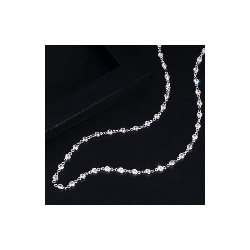 CWWZircons Rose Gold Color Layered Chain Link Round Cubic Zirconia Choker Long Sweater Necklace for Women Boho Jewellery CP051