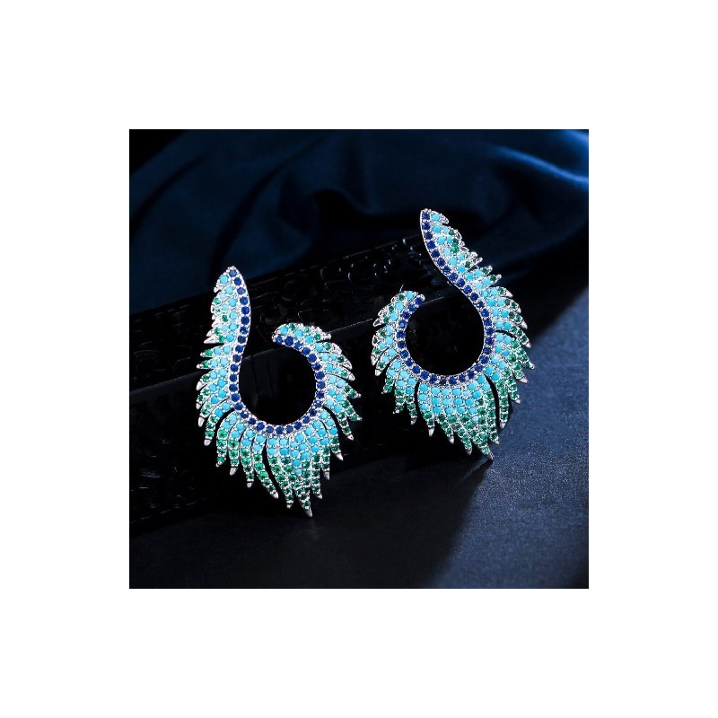 CWWZircons Unique Geometric Design Turkish Blue Cubic Zirconia Micro Pave Long Big Fringed Drop Earrings for Women Jewellery CZ139