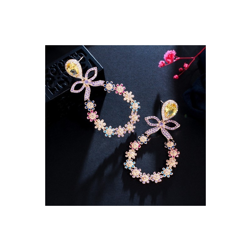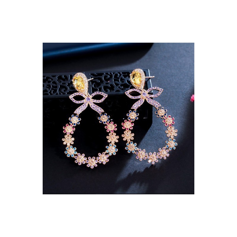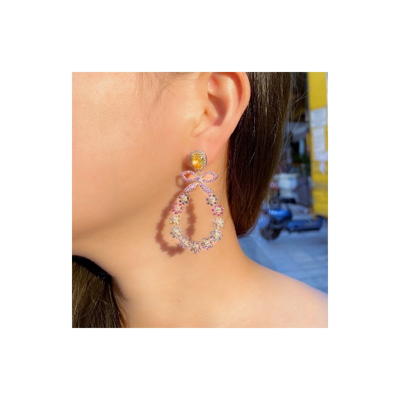 CWWZircons Beautiful Multicolor Cubic Zirconia Stone Big Bowknot Round Flower Drop Earrings for Women Christmas Party Gift CZ989