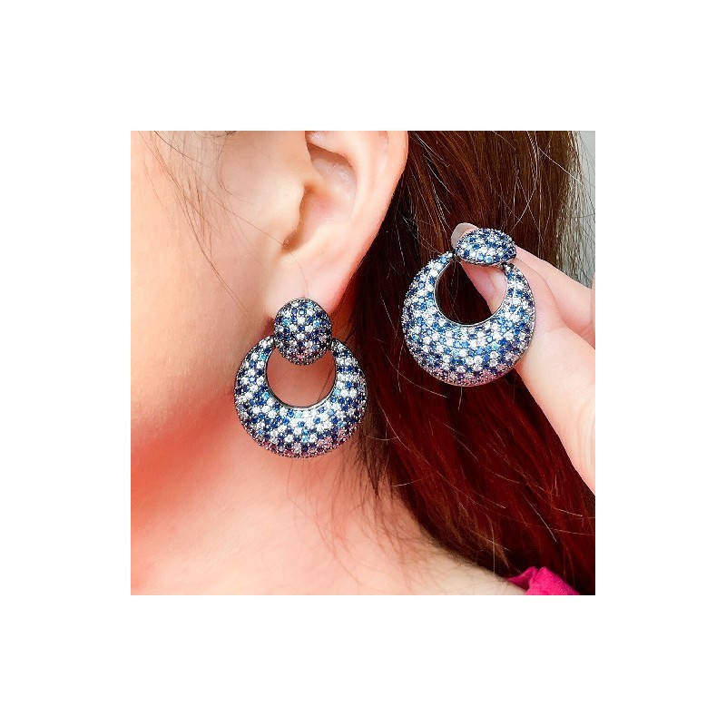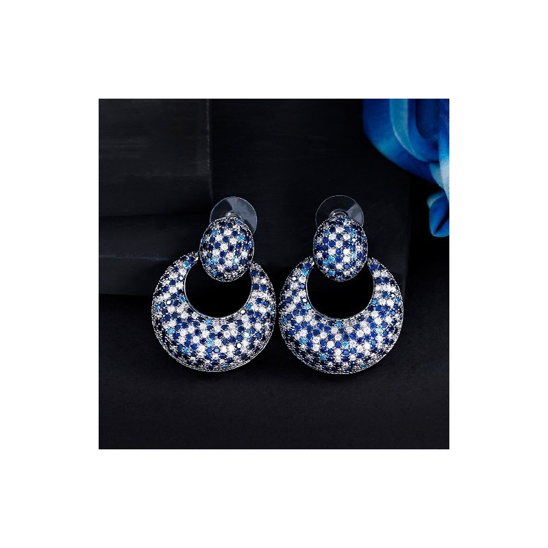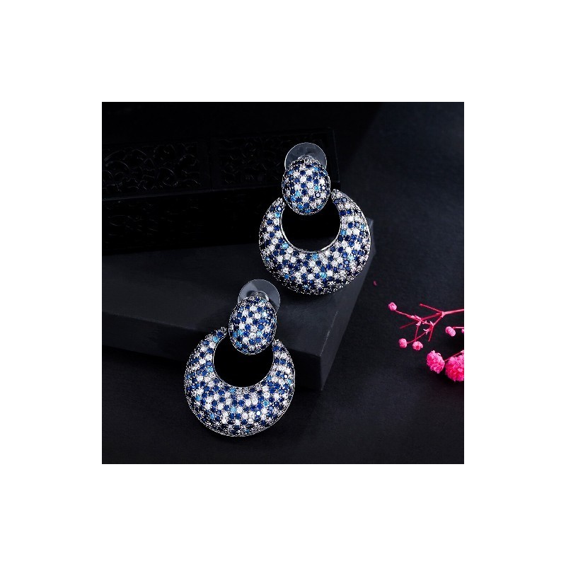 CWWZircons Stunning Royal Blue Cubic Zirconia Women Big Wide Round Drop Earrings for Wedding Party Bridal Jewellery Gift CZ269