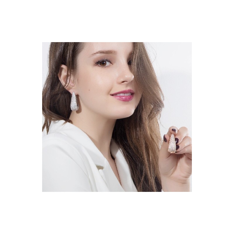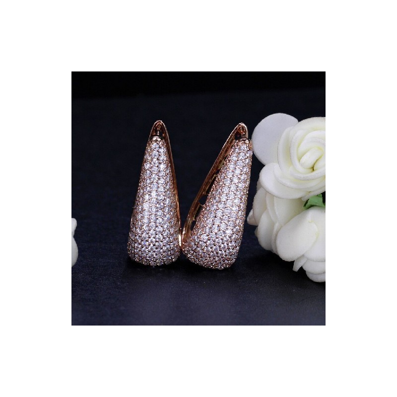 CWWZircons Full Micro Pave Zirconia Stone Gorgeous Rose Gold Color CZ Crystal Women Long Big Hoop Earrings CZ032
