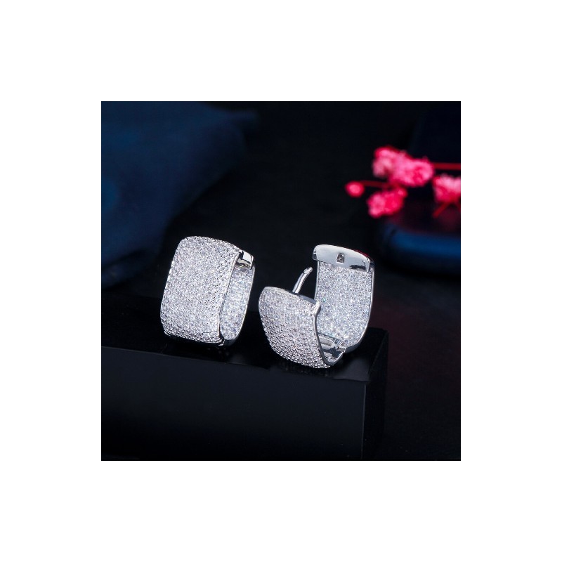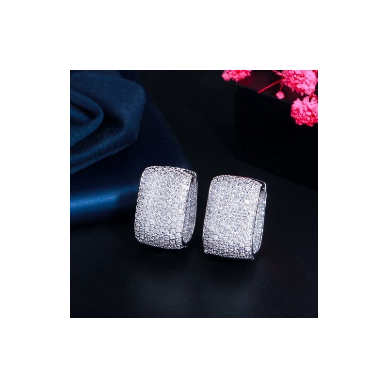 CWWZircons Double Sided Micro Paved Cubic Zirconia White Gold Color CZ Stone Rectangle Hoop Earrings for Ladies Jewellery CZ910