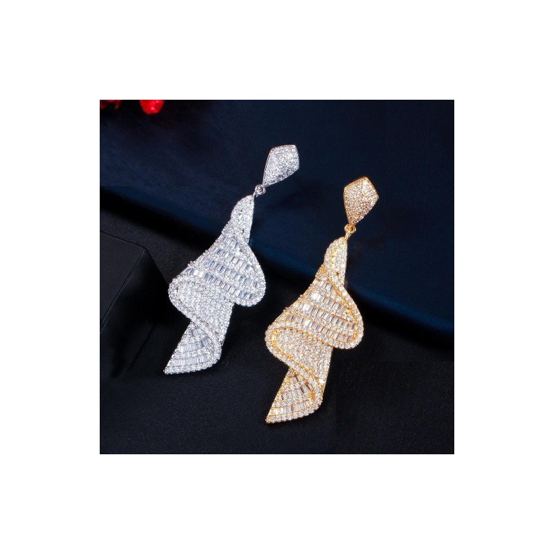 CWWZircons Luxus Cubic Zirconia Pave Baguette Stones Eljegyzési Party Big Drop Egyedi fülbevaló nőknek Esküvői Ékszer CZ792
