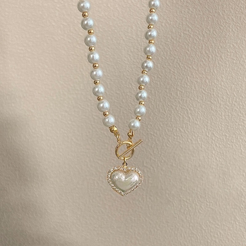 Luxury Designer Elegant Pearl Beads Necklace For Women Ladies Fashion Rhinestone Shell Heart Pendent Necklace Choker Jewellery