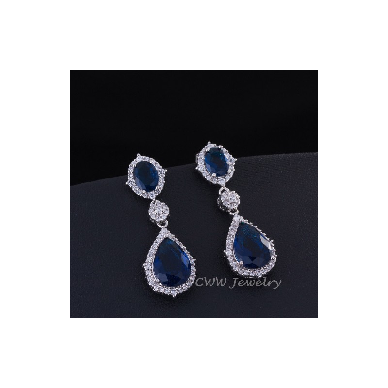 CWWZircons márka 7 színválaszték briliáns fehérarany színű divatos vízcsepp lila CZ kristály fülbevaló cirkóniával CZ370