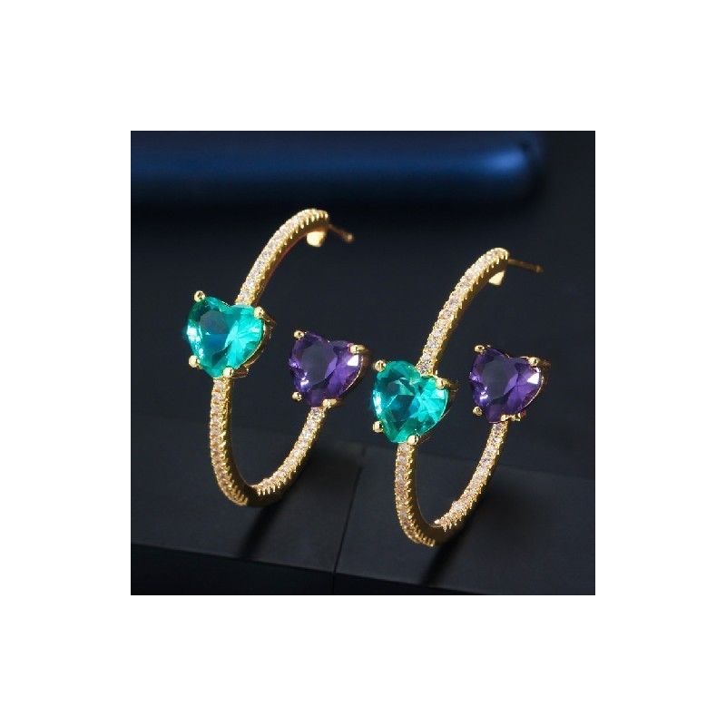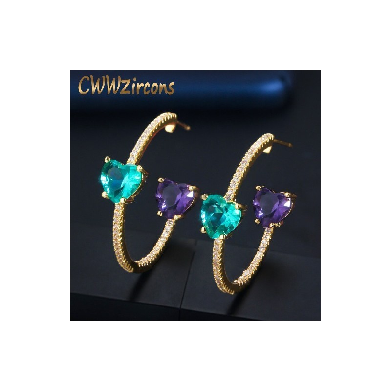 CWWZircons Double Cute Love Heart Shape Purple Blue CZ Crystal Round Hoop Earrings 2022 Trendy Bohemian Jewellery for Women CZ753