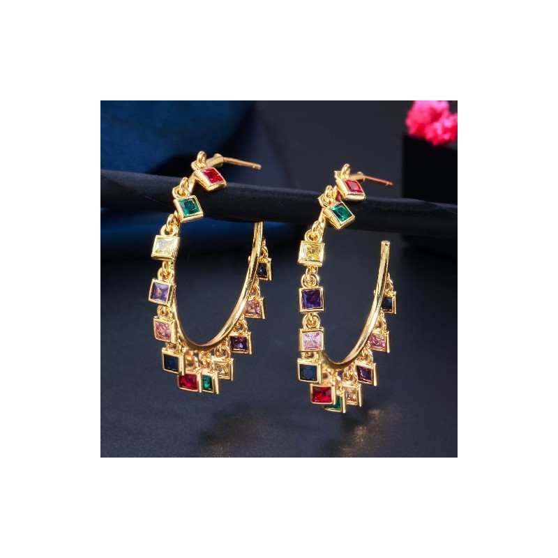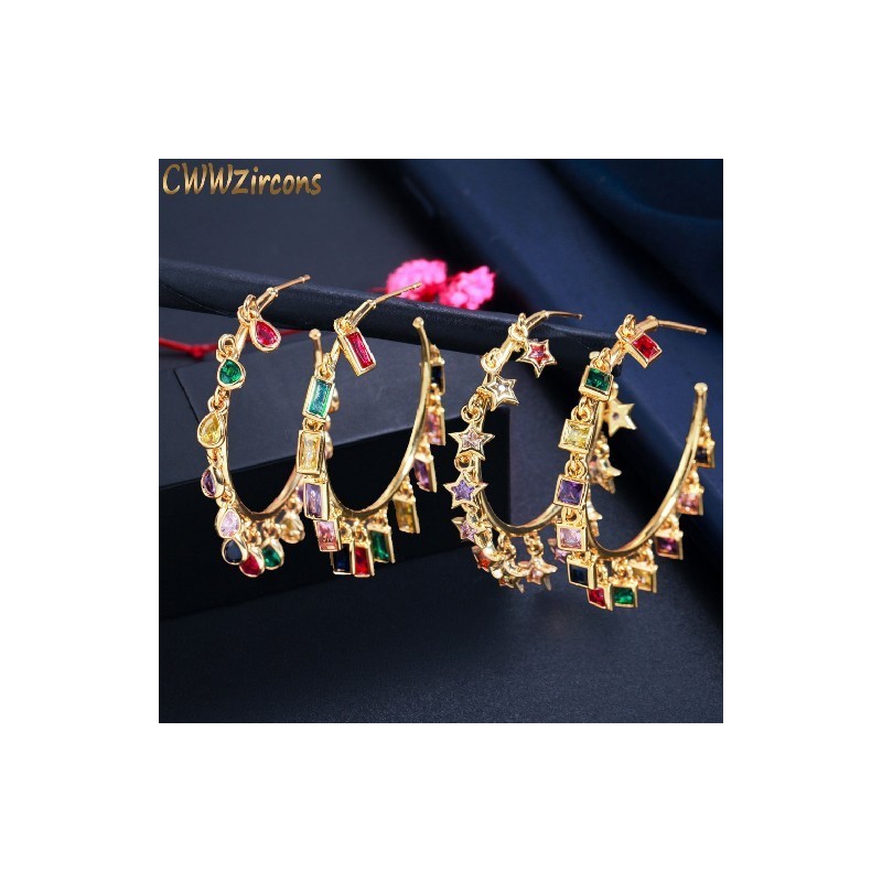 CWWZircons Chic arany színű szivárvány CZ nagy kör, kerek, lógó bojtos csípős varrások karika fülbevaló nőknek 2021 Boho ékszer CZ818