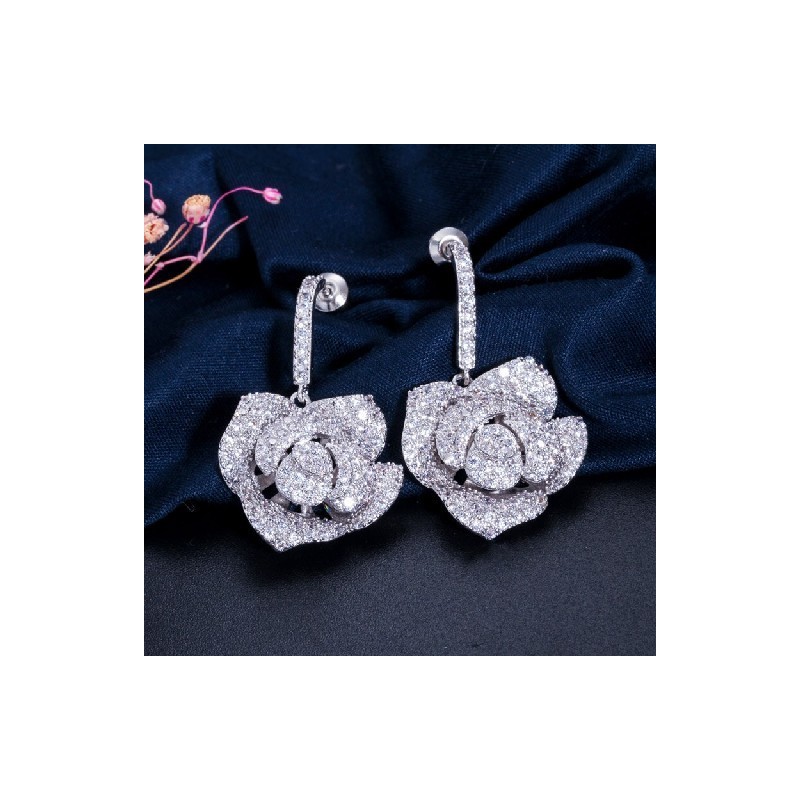 CWWZircons geometrikus rózsa arany színű virág hosszú köbös cirkónia kövek, nagy luxus, lelógó mikro Pave fülbevaló nőknek CZ245