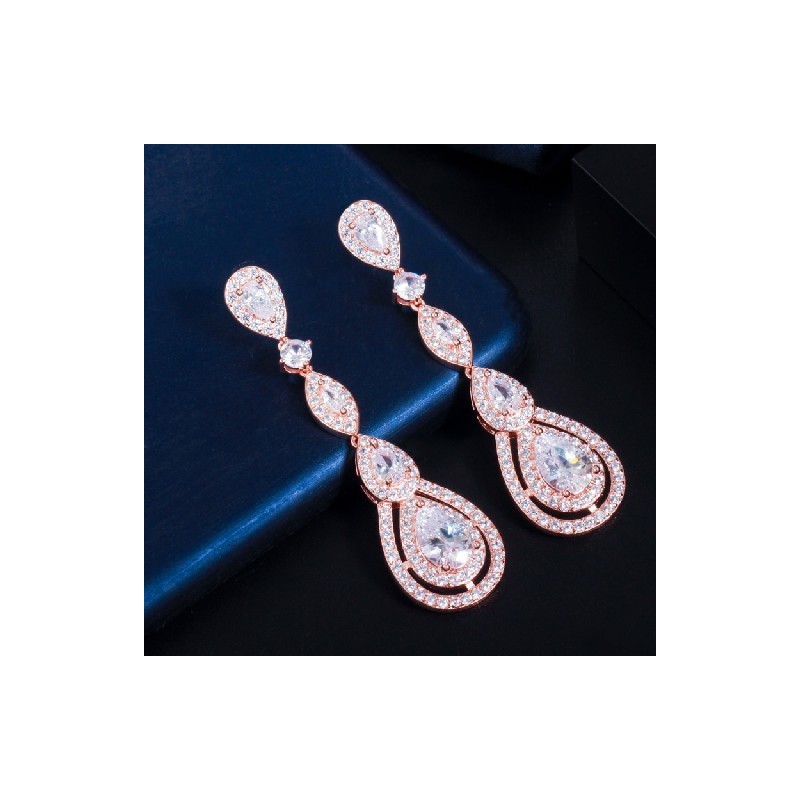 CWWZircons Rose Gold színű luxus, hosszú lelógó kerek vízcsepp Elegáns CZ fülbevaló nőknek menyasszonyi esküvői ékszer ruha CZ766