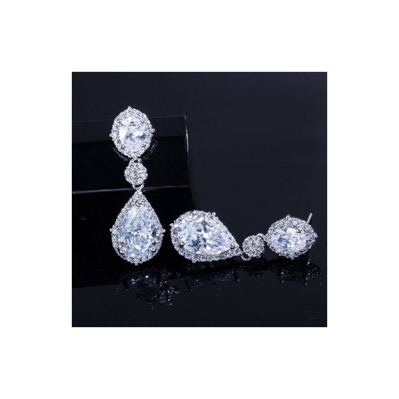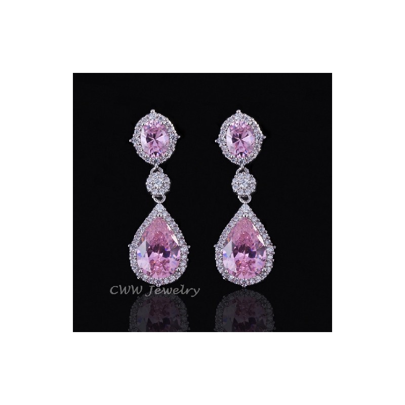 CWWZircons márka 7 színválaszték briliáns fehérarany színű divatos vízcsepp lila CZ kristály fülbevaló cirkóniával CZ370