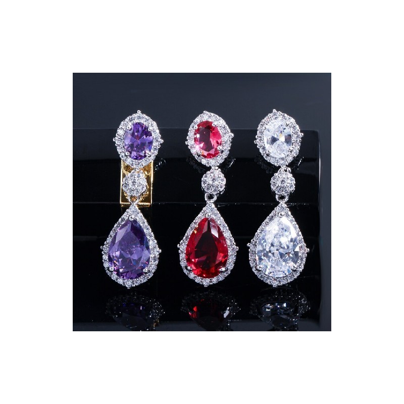 CWWZircons Brand 7 Color Options Brilliant White Gold Color Fashion Water Drop Purple CZ Crystal Earrings With Zirconia CZ370