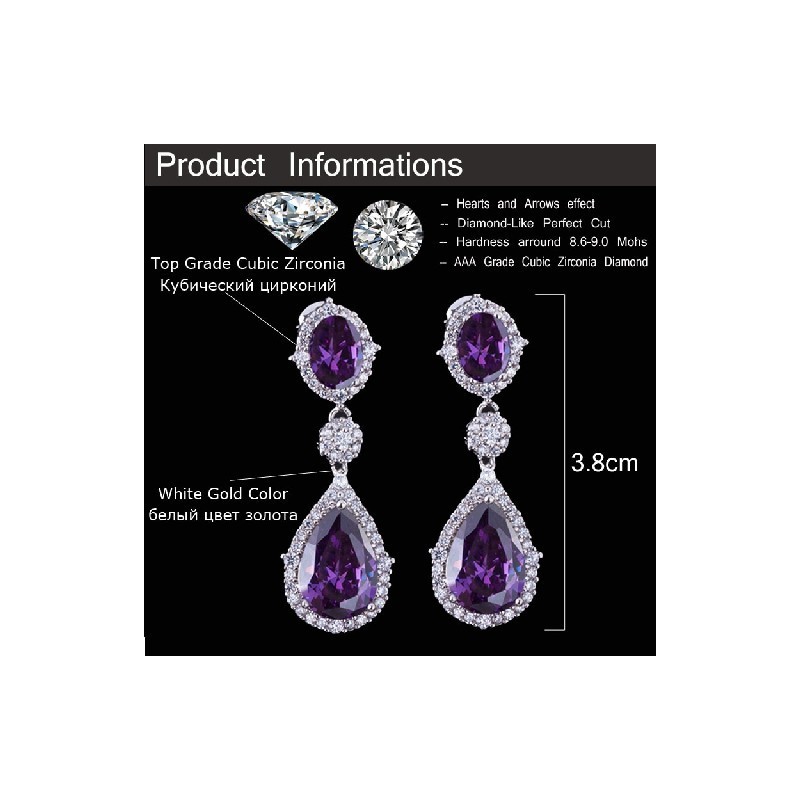 CWWZircons Brand 7 Color Options Brilliant White Gold Color Fashion Water Drop Purple CZ Crystal Earrings with Zirconia CZ370