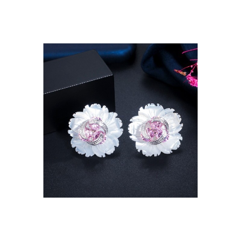 CWWZircons 2 in 1 Design Natural Shell Flower Yellow CZ Stone Big Stud Earrings for Ladies Fashion Brand Unique Jewellery CZ684