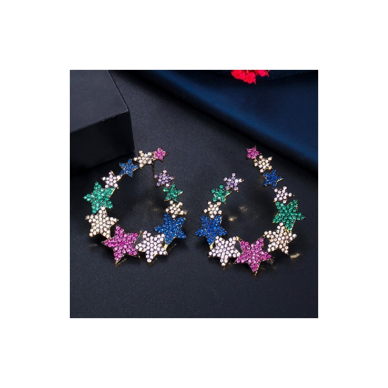 CWWZircons Chic Full Cubic Zirconia Pave Multi Colored Rainbow CZ Big Star Earrings for Ladies Bohemian Inspired Jewellery CZ737