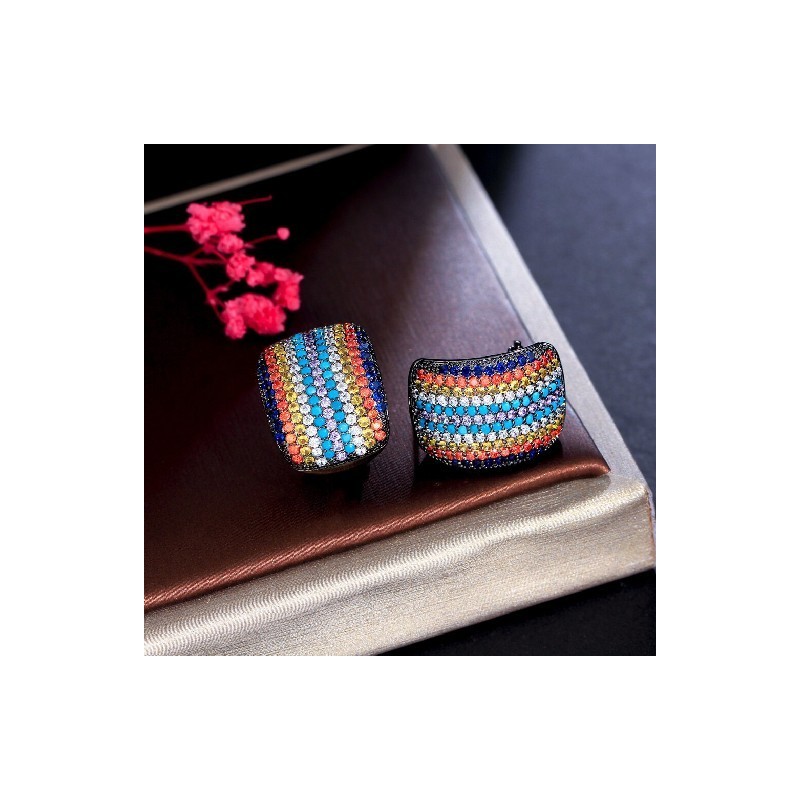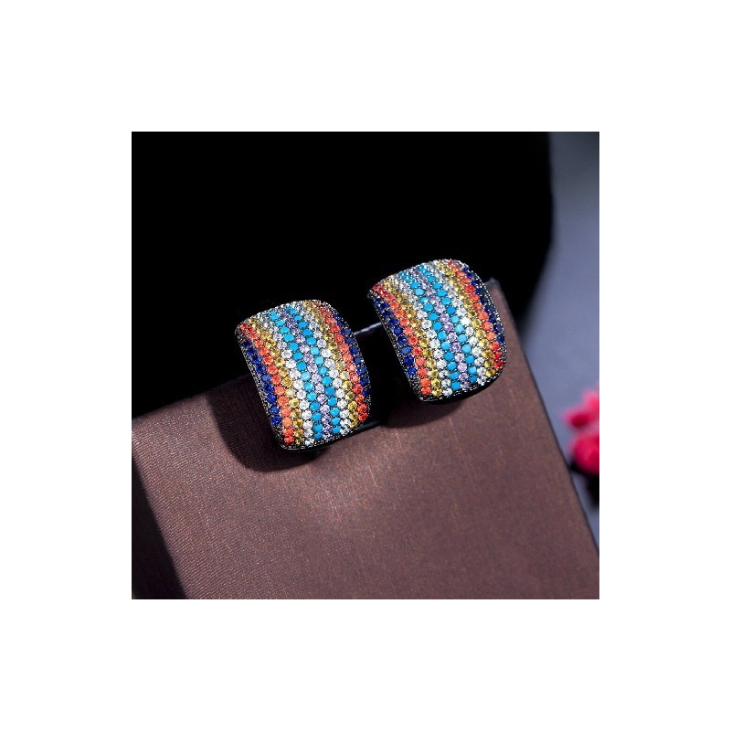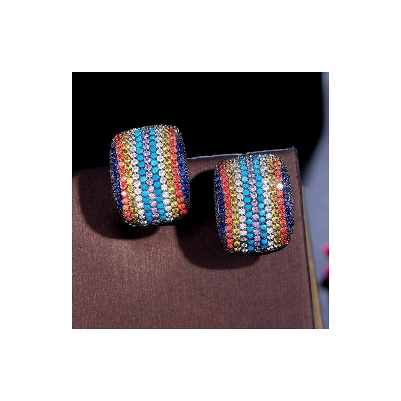 CWWZircons Unique Bright Micro Pave Cubic Zirconia Stone Colorful Big Rectangle Stud Earrings for Women Party Accessories CZ434