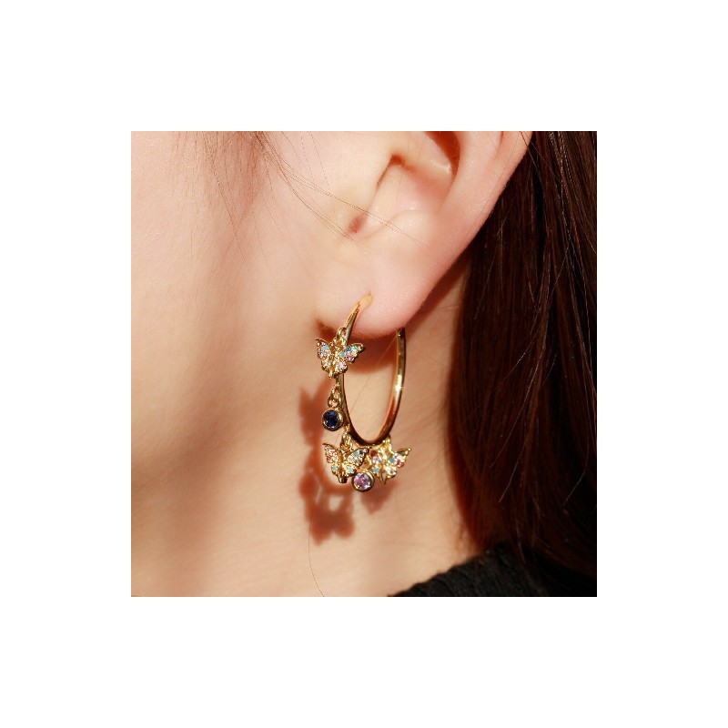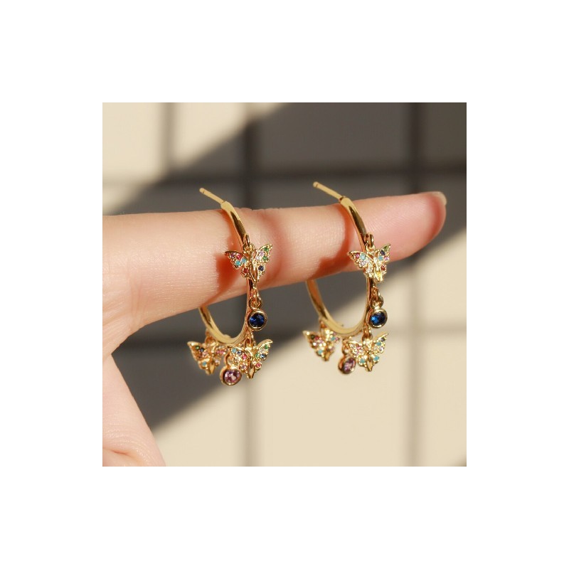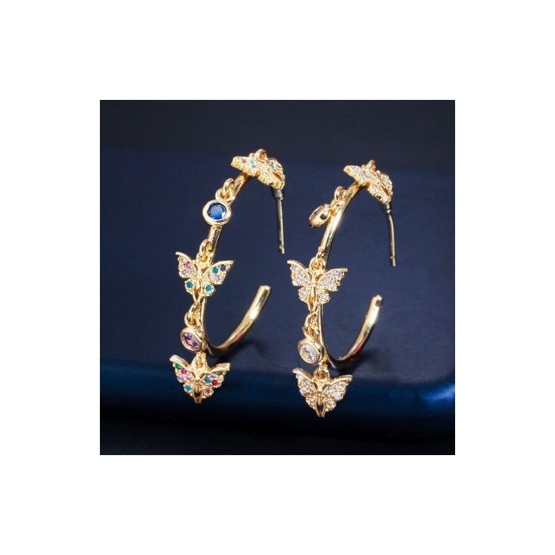 CWWZircons kör, kerek forma arany színű, csüngő csepp CZ bűbájok aranyos pillangós karika fülbevaló nőknek divat ékszer CZ825