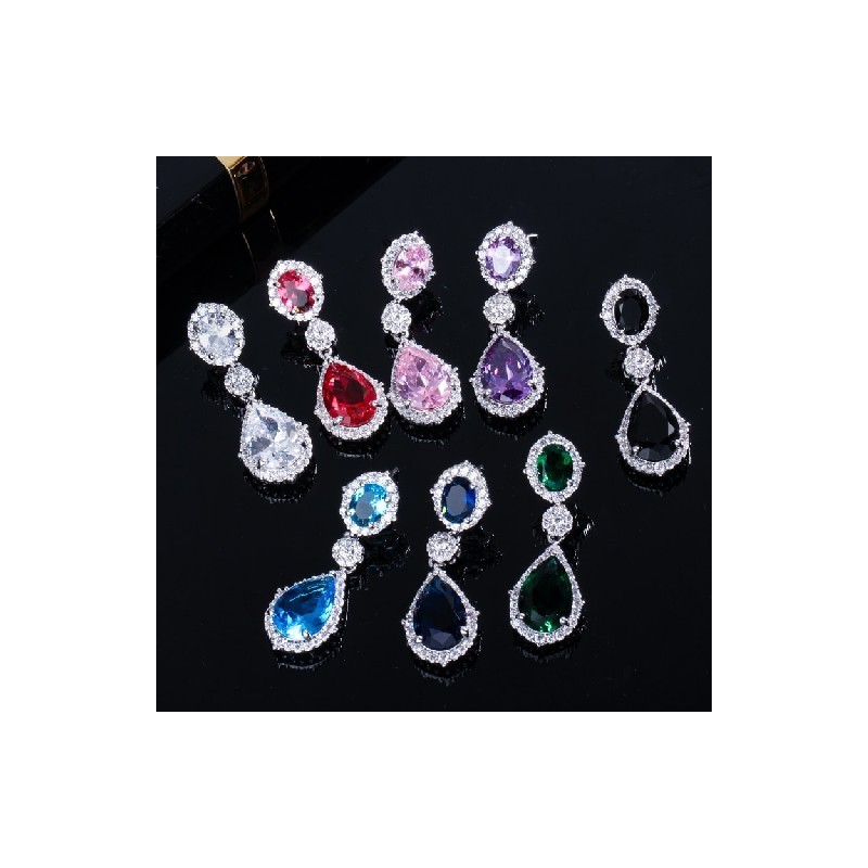 CWWZircons márka 7 színválaszték ragyogó fehérarany színű divatos vízcsepp lila CZ kristály fülbevaló cirkóniával CZ370