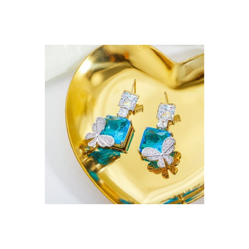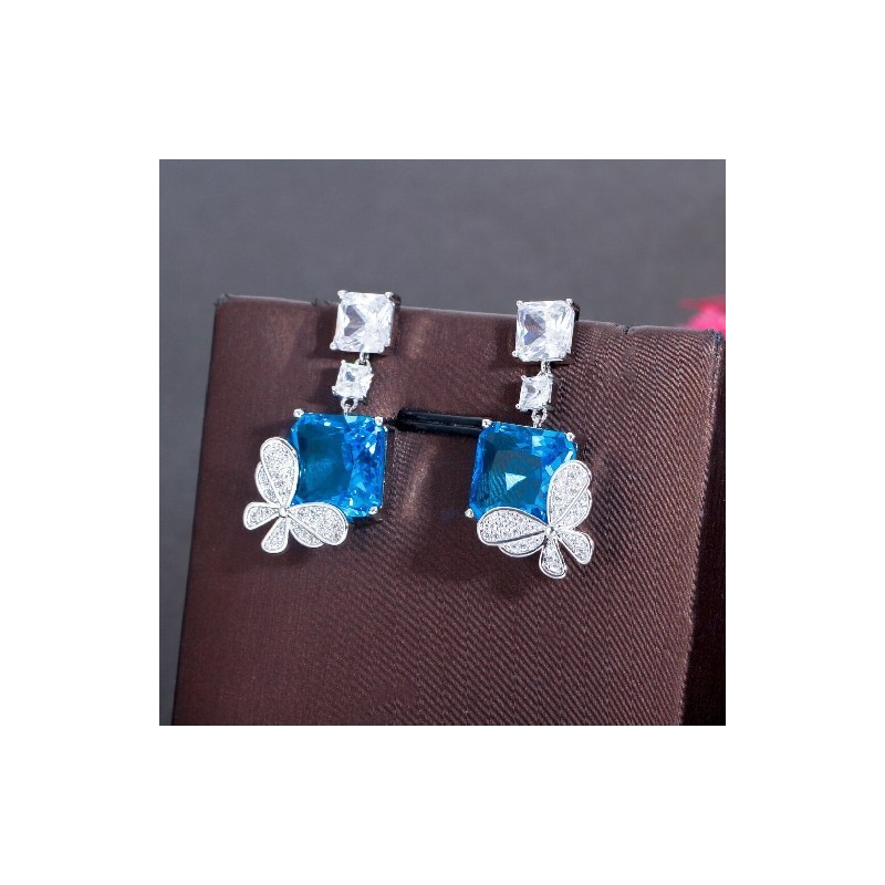 CWWZircons New Style Dangle Drop Square Cubic Zirconia Light Blue Butterfly Earrings for Women Elegant Daily Party Jewellery CZ338