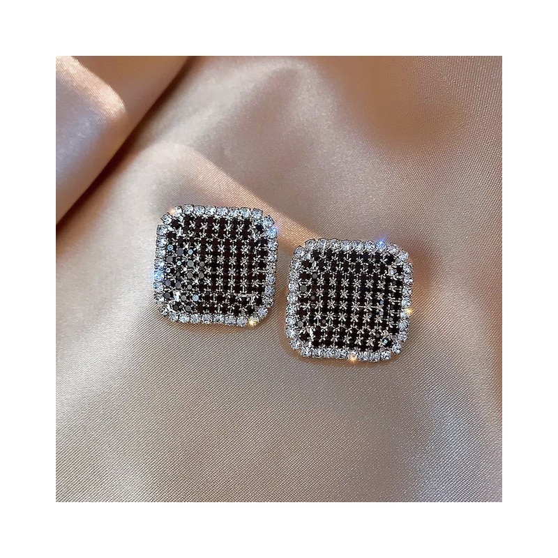 Female Shiny Luxury Black WhiteCrystal Stud Earrings For Women Classic Zircon Square Earrings Vintage Gold Color Jewellery Gifts