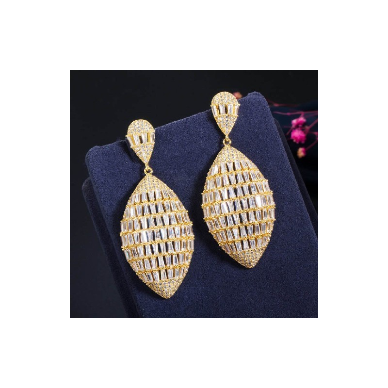 CWWZircons luxus, nagy, csüngő, bagett levelű cirkónia 3 tónusú afrikai aranyozott esküvői női ruha fülbevaló CZ671