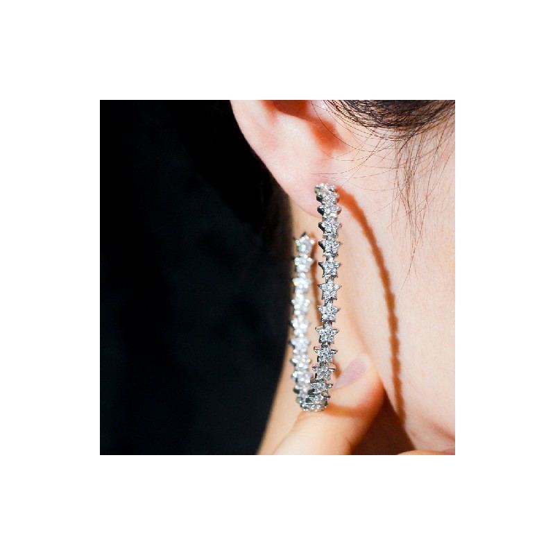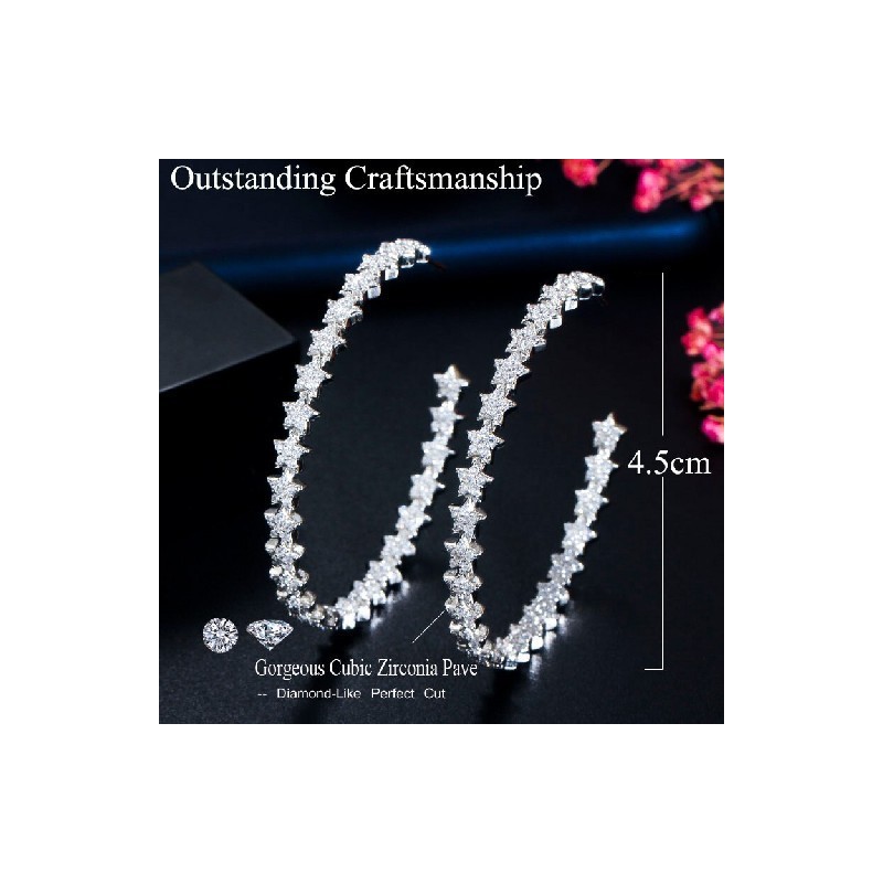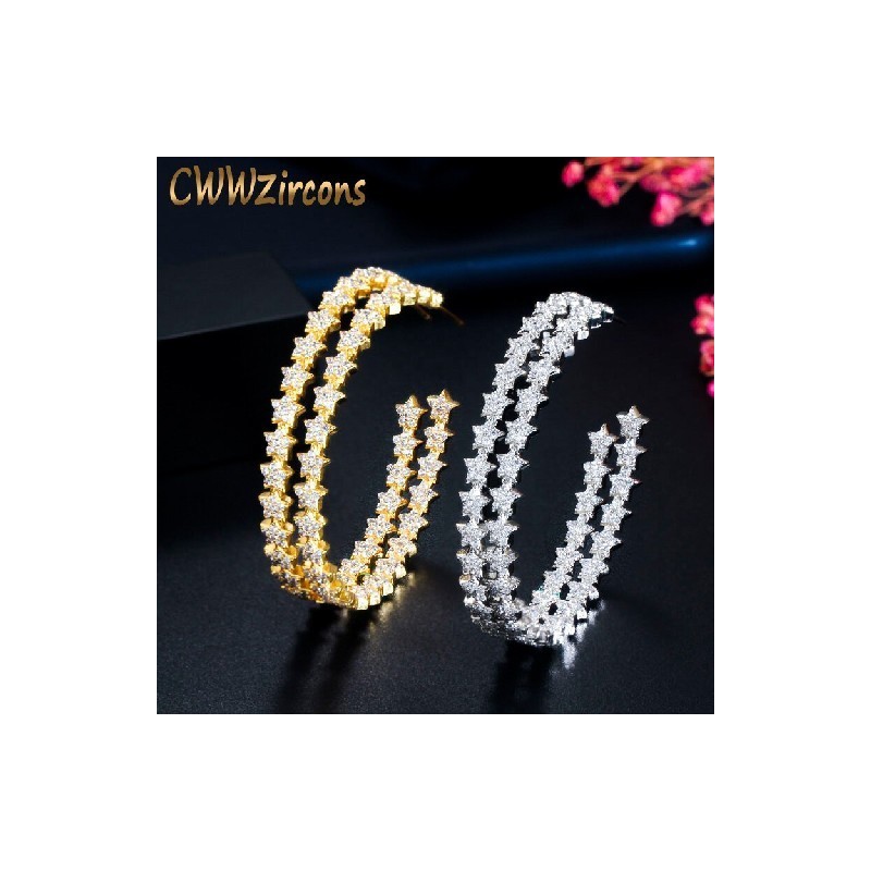 CWWZircons Trendy Cubic Zirconia Star Shape Long Big Round Circle CZ Hoop Earrings Women Dubai Gold Color Party Jewellery CZ746