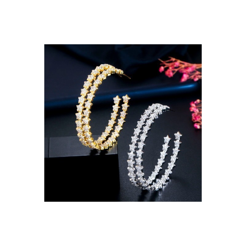 CWWZirkonok Divatos cirkónium csillag alakú hosszú nagy kerek kör CZ karika fülbevaló női Dubai arany színű party ékszer CZ746
