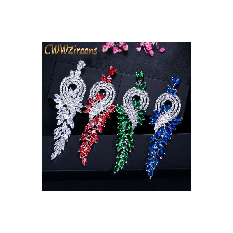 CWWZircons márka kiváló minőségű fehérarany színű osztrák CZ kristály menyasszonyi hosszú piros zöld csepp fülbevaló női ékszer CZ376
