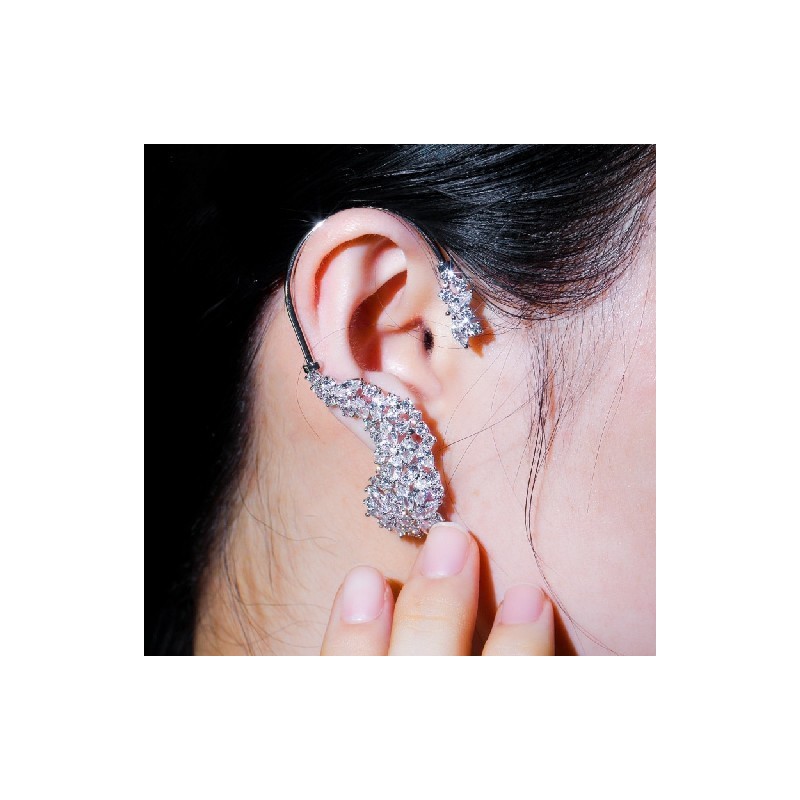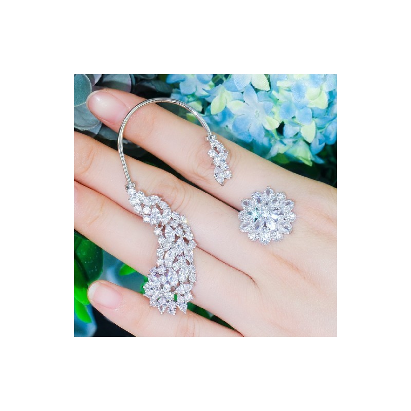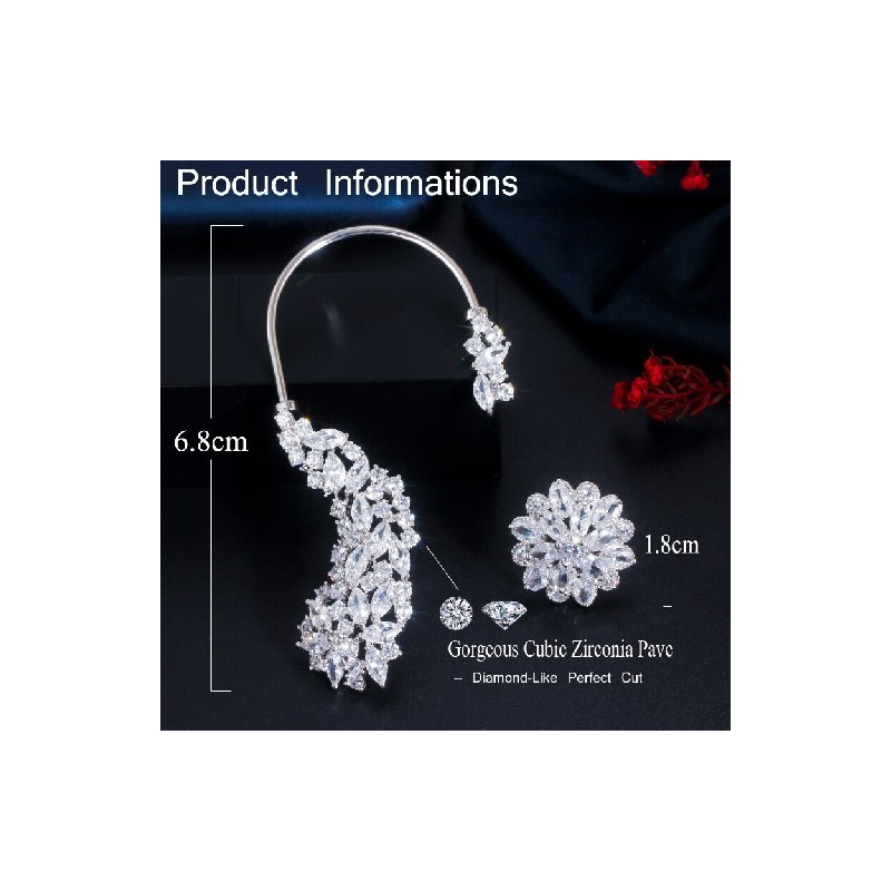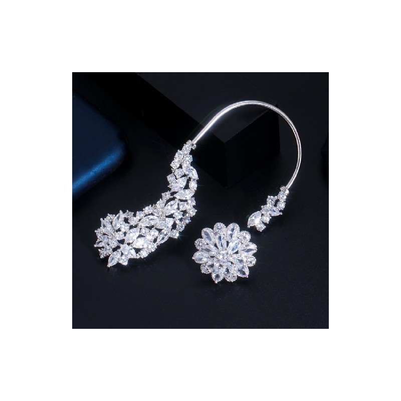 CWWZircons csillogó cirkónium fürt virág nagy hosszú aszimmetrikus füles horog hegymászó fülbevaló női punk ékszer CZ732