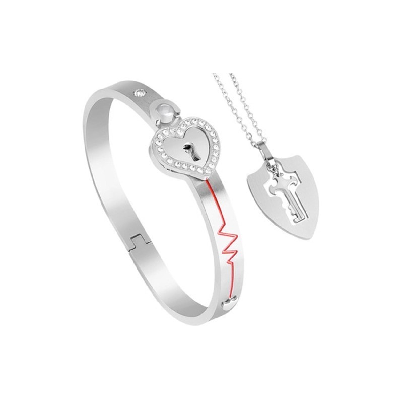 Key Pendant Necklace & Lock Bracelet for Gift with Key to My Heart for Couple