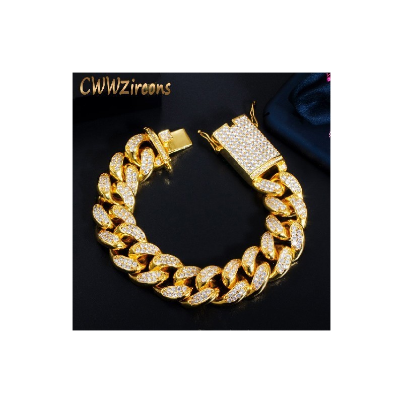 CWWZircons Luxury Cubic Zirconia Miami Cuban Twist Link Chain Bracelet Bangle for Lover Gold Color Bling Hip Hop Jewellery CB221