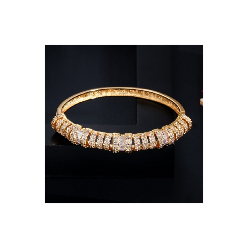 CWWZircons Chic 585 Gold Plated CZ Round Cuff Bangle Bracelet Ring Sets for Women Dubai Bridal Wedding Jewellery Accessories T391