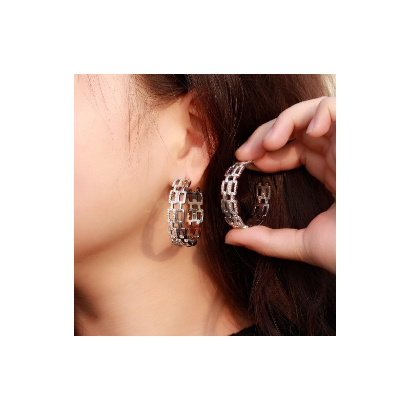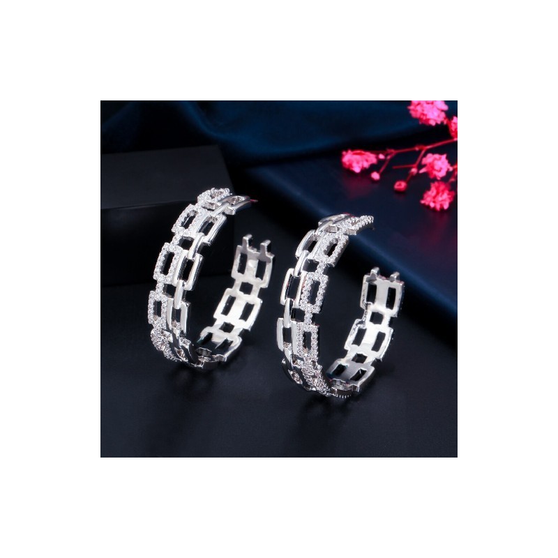 CWWZircons Divatos cirkónia burkolt sárga arany színű kubai link alakú, kerek, nagy karikás fülbevaló női hip-hop ékszer CZ848