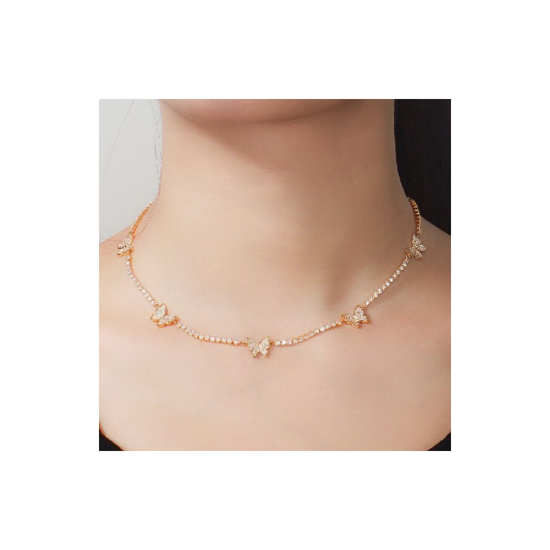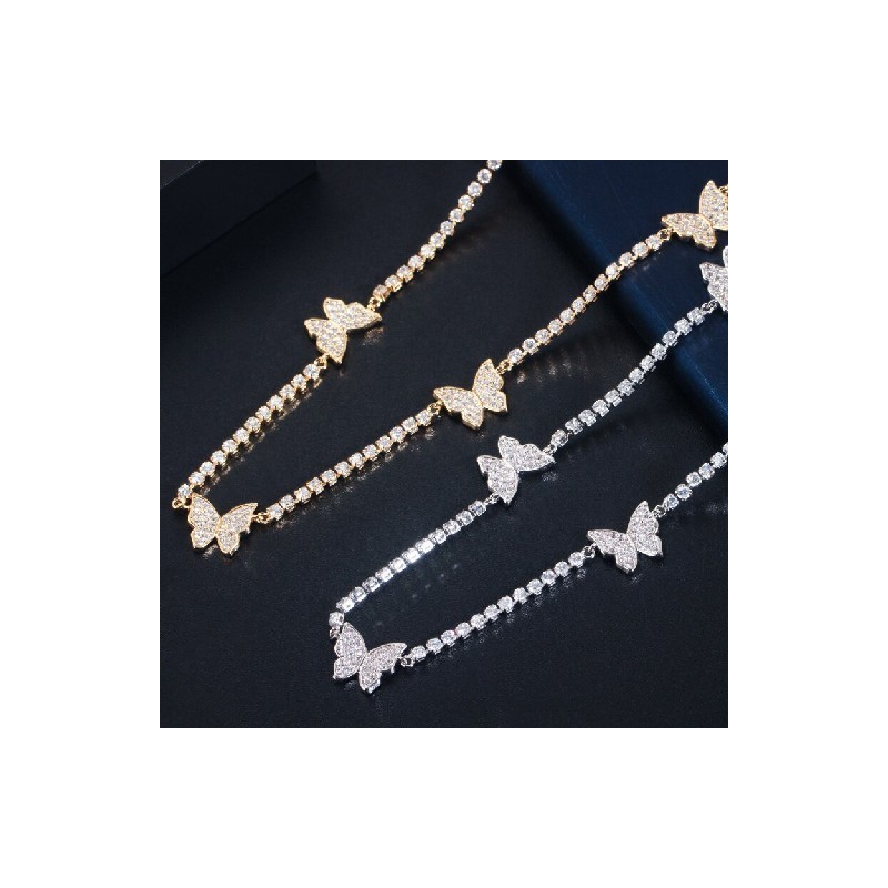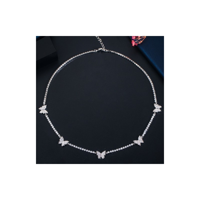CWWZircons Elegáns Tenisz Lánc Cubic Circon Crystal Butterfly CZ Round Choker Nyaklánc Női Divat Bohém Ékszer CP054