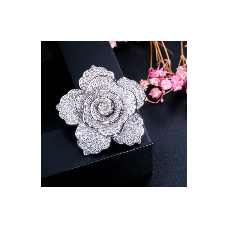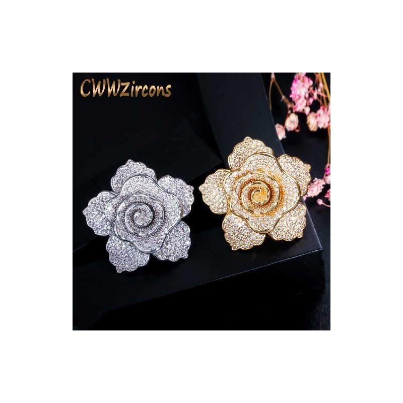 CWWZircons Geometric Cubic Zirconia Silver and Yellow Gold Color Beautiful Cute Flower Brooches for Women Scarves Buckle BH010