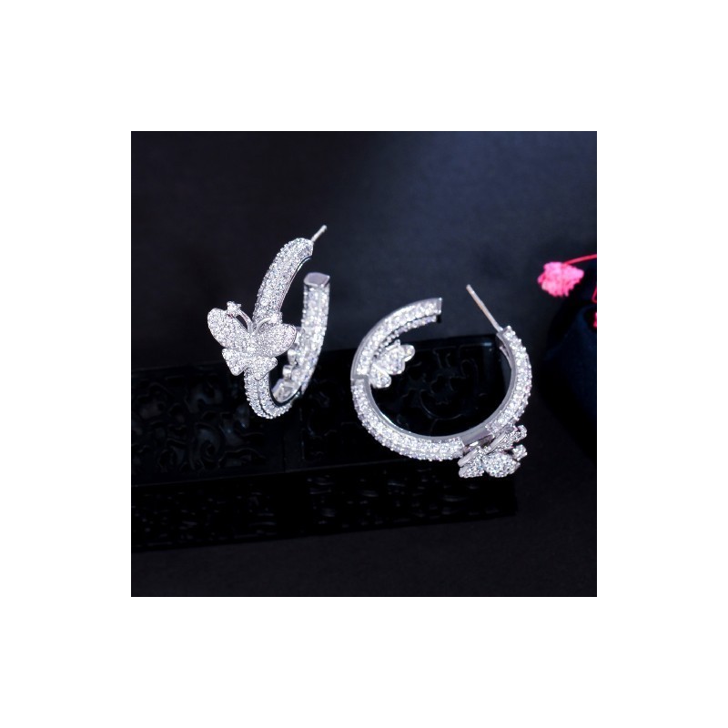 CWWZircons Shiny Micro Pave Cubic Zirconia Circle Round Cute Butterfly Hoop Earrings for Women New Fashion Party Jewellery CZ022