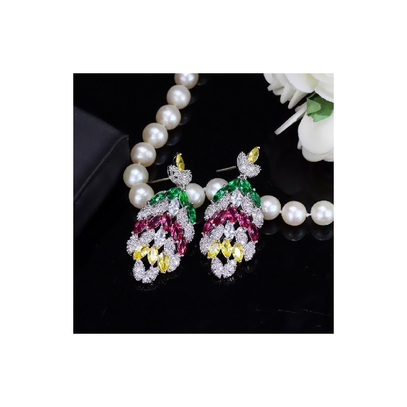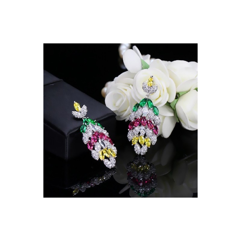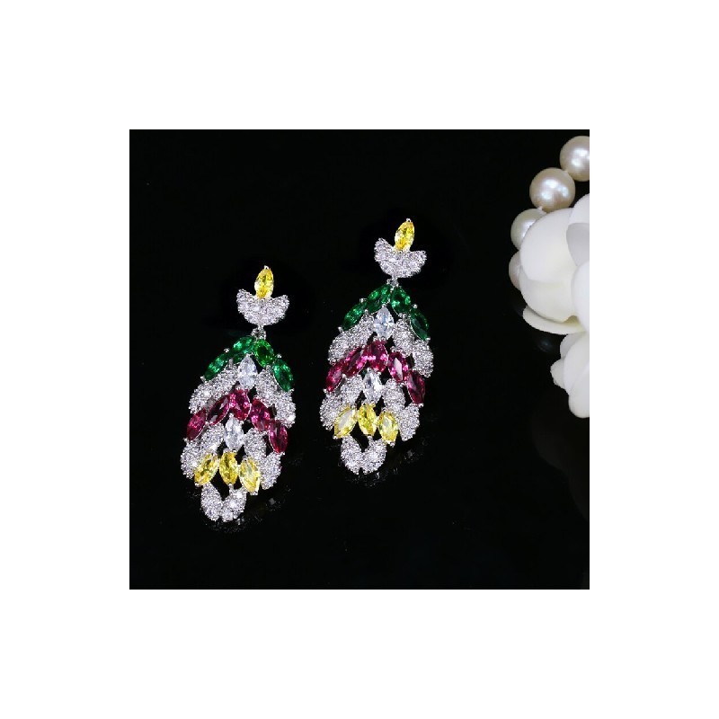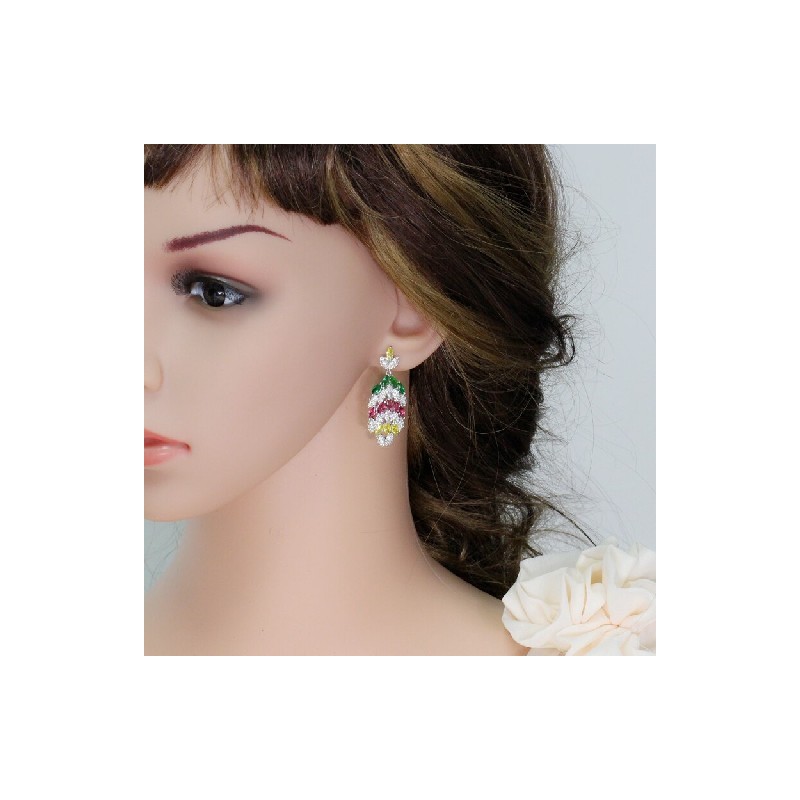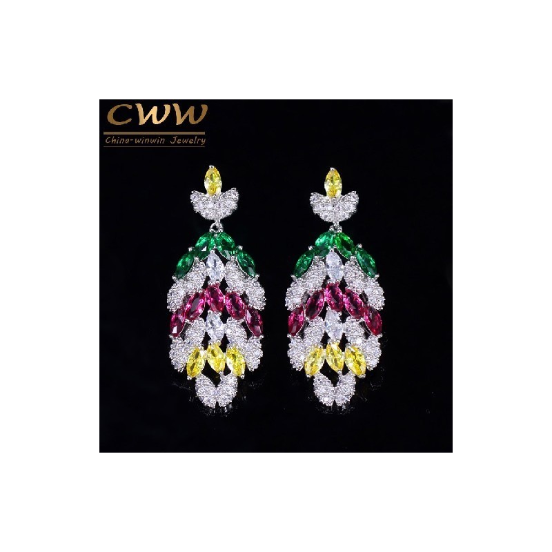 CWWZircons Fancy Design Mix Sárga Piros Zöld CZ Crystal Drop Dangle Színes Fülbevaló Női Esküvői Bankett Ékszer CZ009