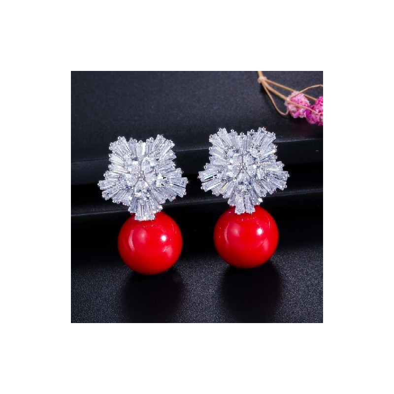 CWWZircons 2022 új érkezés hóvirág dizájn női nagy csepp fehér gyöngy fülbevaló cirkóniával karácsonyi ajándék CZ069