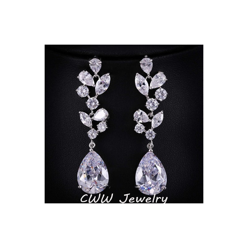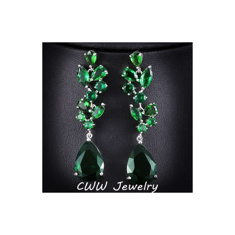 CWWZircons 4 színű divatos és luxus vízcsepp kék zöld piros nagy hosszú cirkónium kristály fülbevaló nőknek CZ176