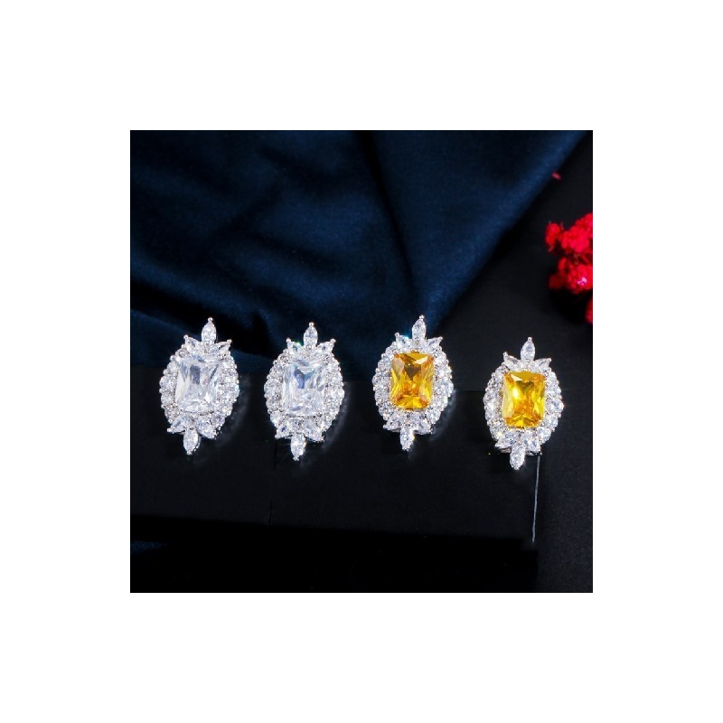 CWWZircons fényes sárga köbös cirkónia kőből készült kerek tenisz nyaklánc és fülbevaló szett női parti ruha ékszer kiegészítő T443
