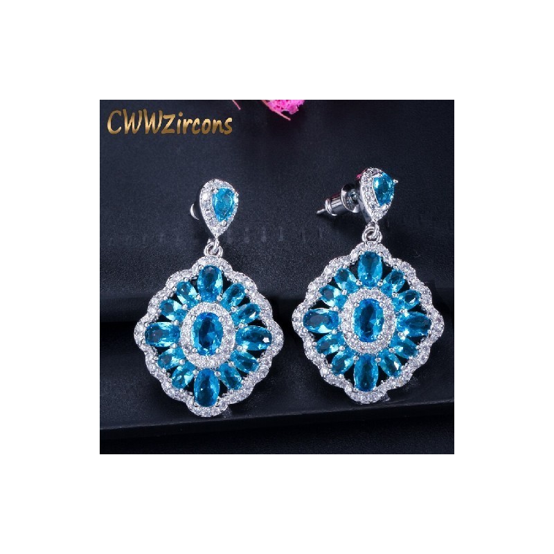 CWWZircons Brand 2018 New Trendy Gorgeous Big Light Blue Crystal Drop Earrings For Women Wedding Bridesmaid Jewellery Gift CZ340