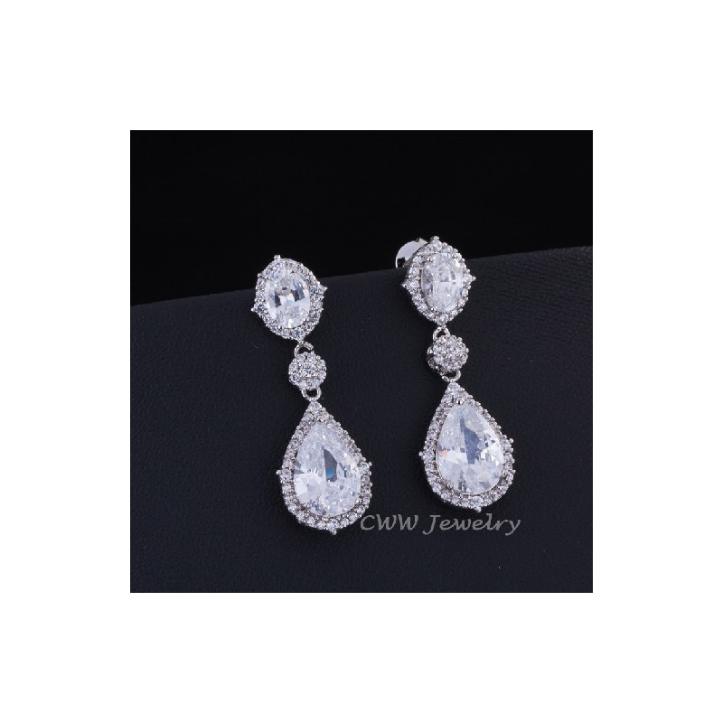 CWWZircons márka 7 színválaszték briliáns fehérarany színű divatos vízcsepp lila CZ kristály fülbevaló cirkóniával CZ370
