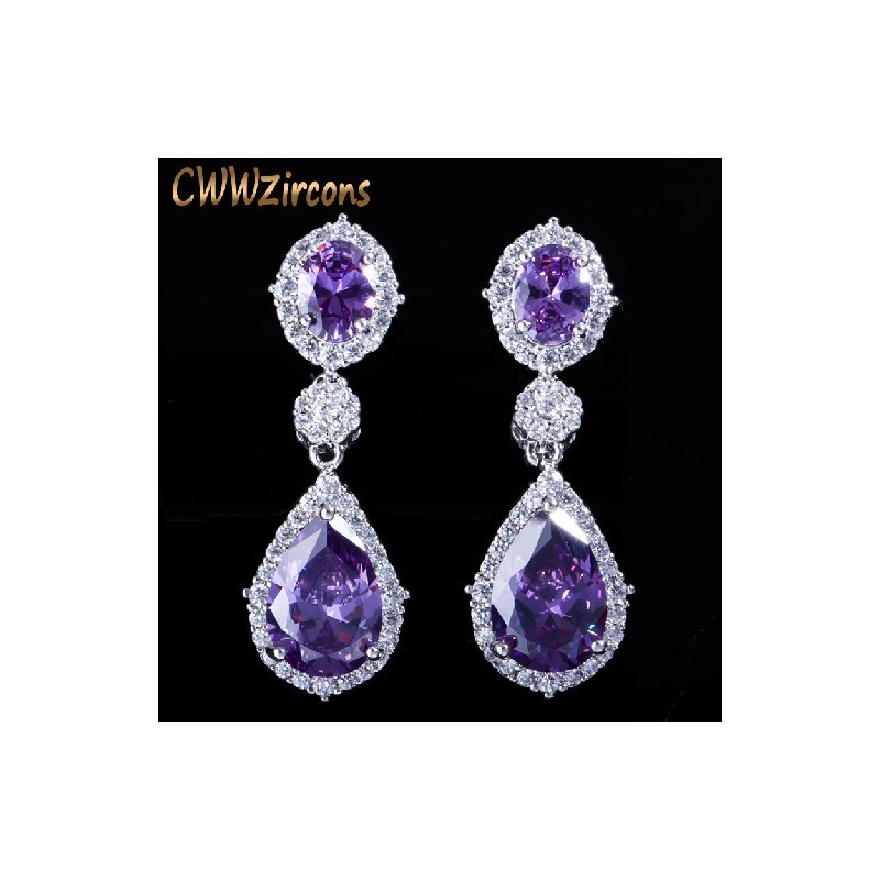 CWWZircons Brand 7 Color Options Brilliant White Gold Color Fashion Water Drop Purple CZ Crystal Earrings with Zirconia CZ370
