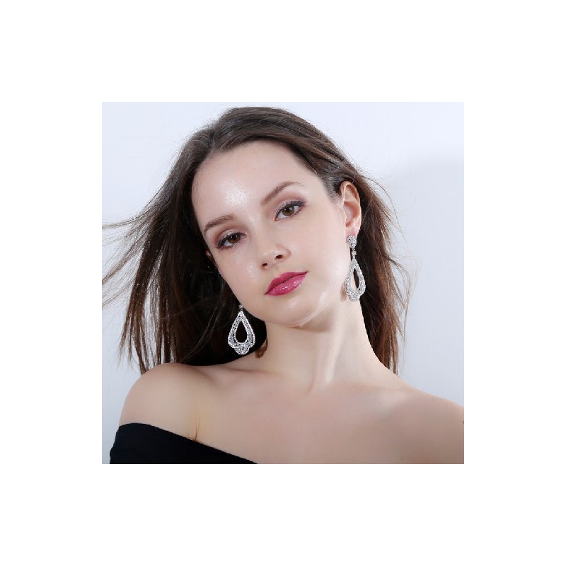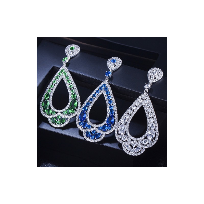 CWWZircons márka luxus boho stílusú fehérarany színű cirkónia hosszú, nagy kinézetű zöld lelógó fülbevaló nőknek CZ398